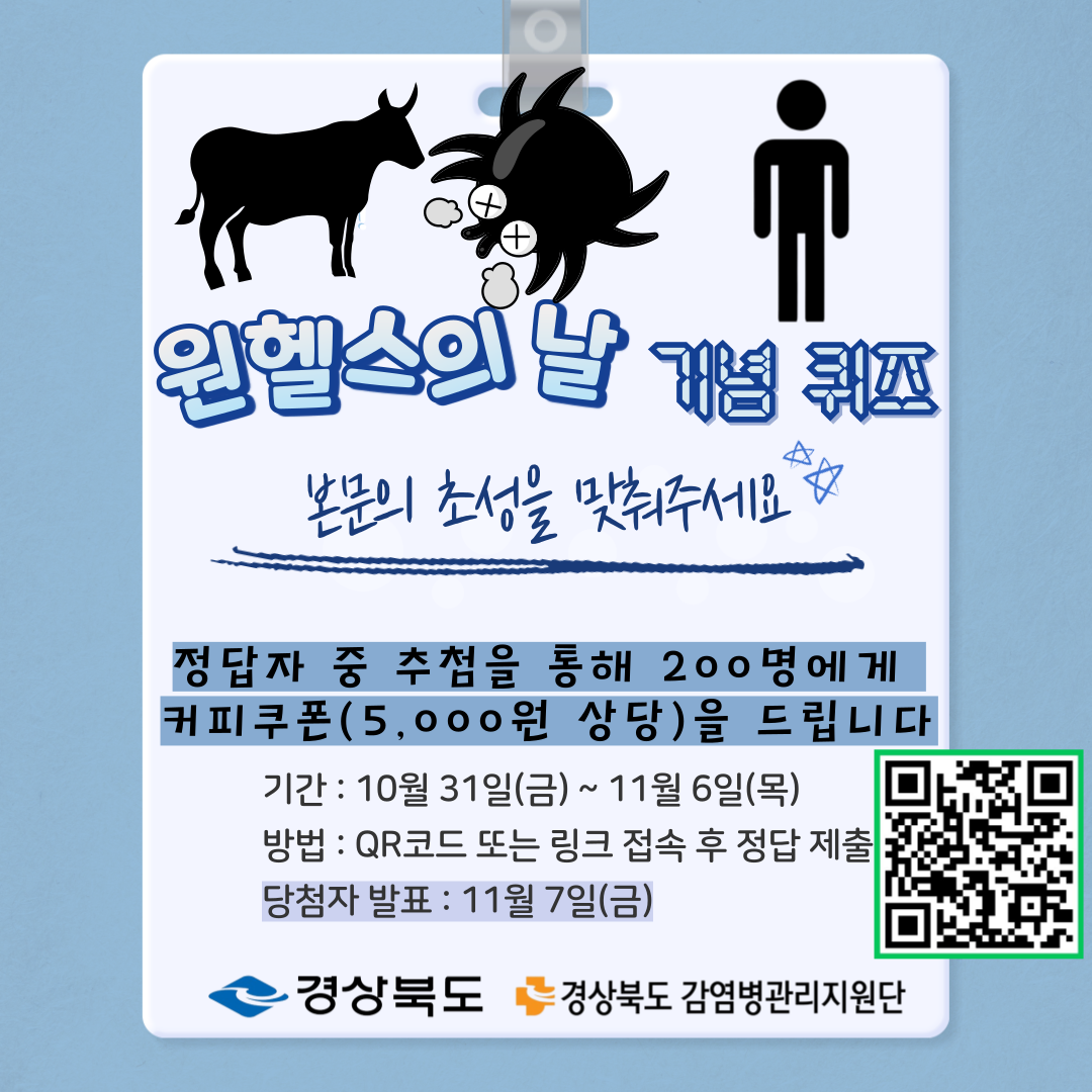 경상북도 감염병관리지원단에서 세계 원헬스의 날을 맞아 준비한 퀴즈 이벤트!